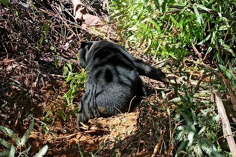 - Satu individu beruang usia 2-3 tahun, harus diamputasi kakinya akibat luka dari jerat babi tersebut