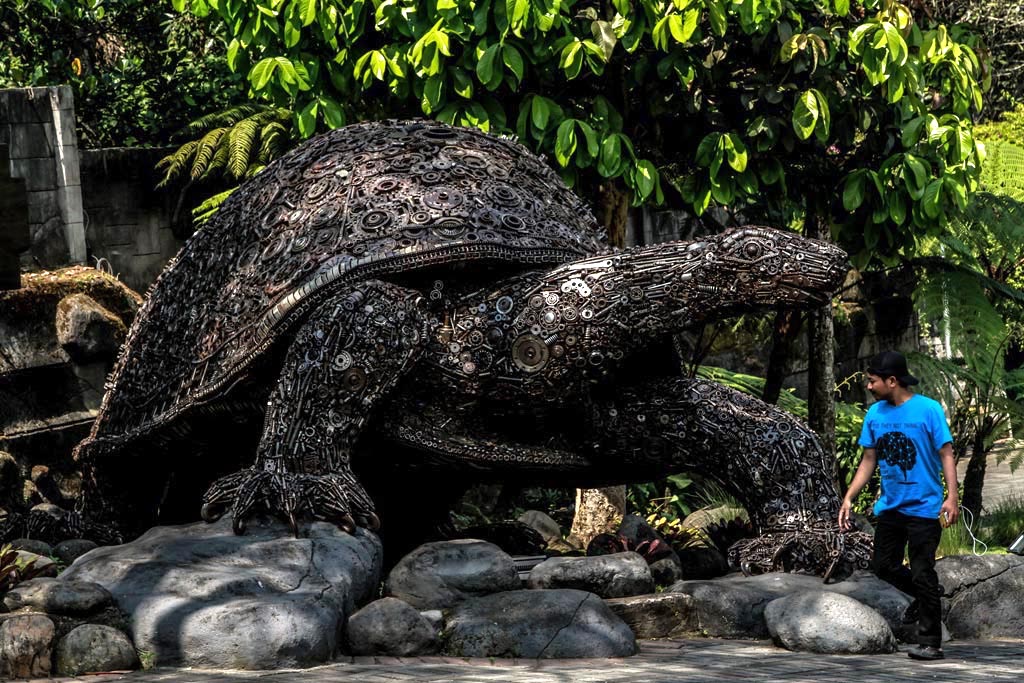 “Patung realis bentuk kura-kura itu saya analogikan panjang umur, damai dan bijaksana,” ucapnya bersahaja.
