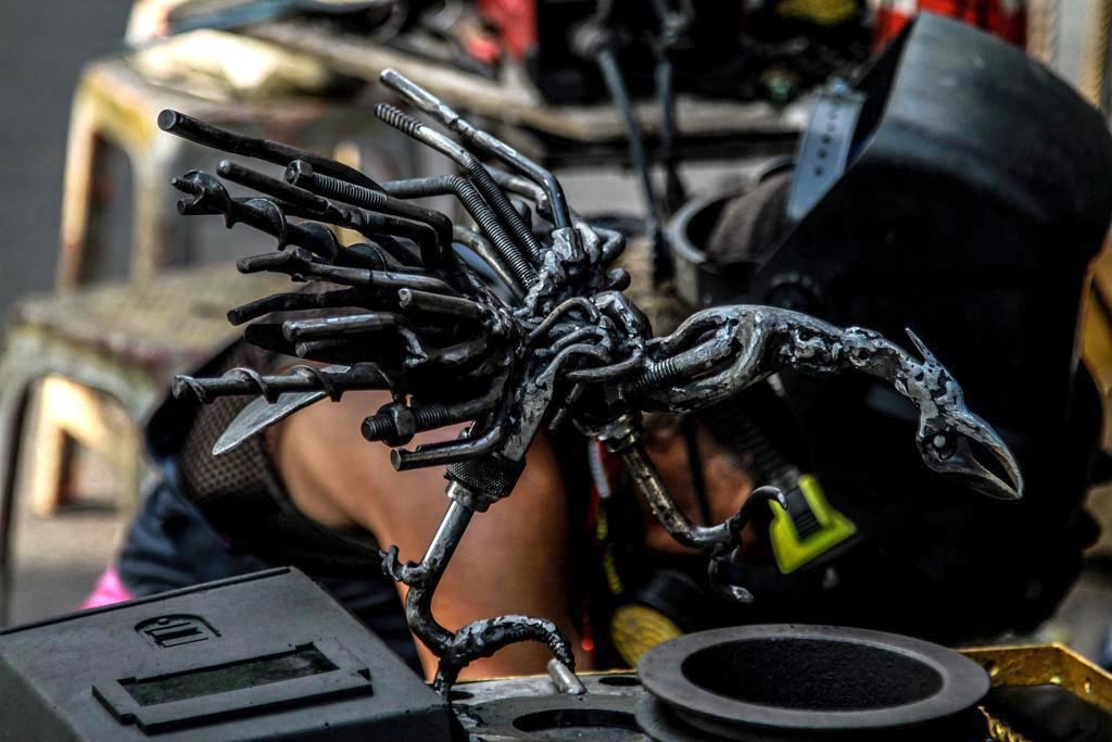 Dia mengaku, karya-karya patung yang dibuat tersebut berasal dari berbagai besi rongsokan mulai dari onderdil mobil, sepeda motor, kereta api, tank, dan lain sebagainya.