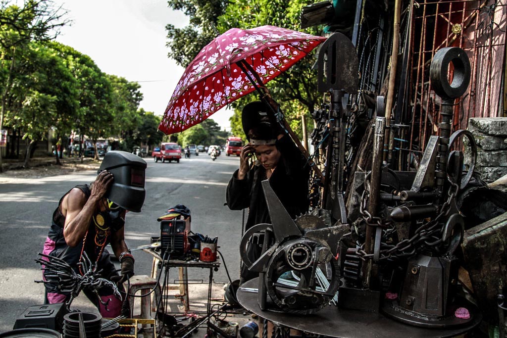 Ditemani rekanya, Michelle Laing yang datang dari Inggris ke Indonesia untuk belajar membuat karya dari bahan besi itu, keduanya terlihat sibuk mengutak atik besi bekas yang ada didepanya. Mereka terlihat kompak dan profesional menyambung besi-besi itu dengan menggunakan las. Sesekali mereka berhenti, mengamati bentuk kerajinan yang sedang mereka buat untuk dicocokkan dengan bahan-bahan yang masih berserakan.
