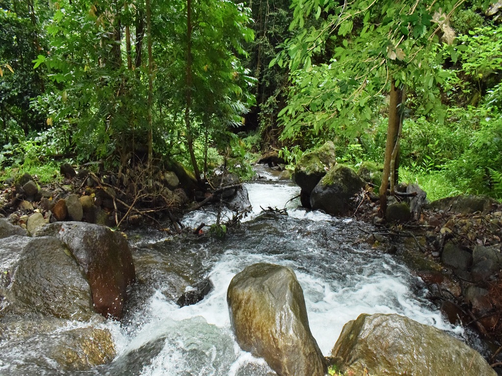 Selepas areal persawahan, perjalanan dilanjutkan melewati sebuah kali selebar sekitar 3 meter. Hamparan hutan dengan pepohonan tinggi menjulang berusia puluhan tahun pun menyambut, tanda batas kawasan hutan lindung.