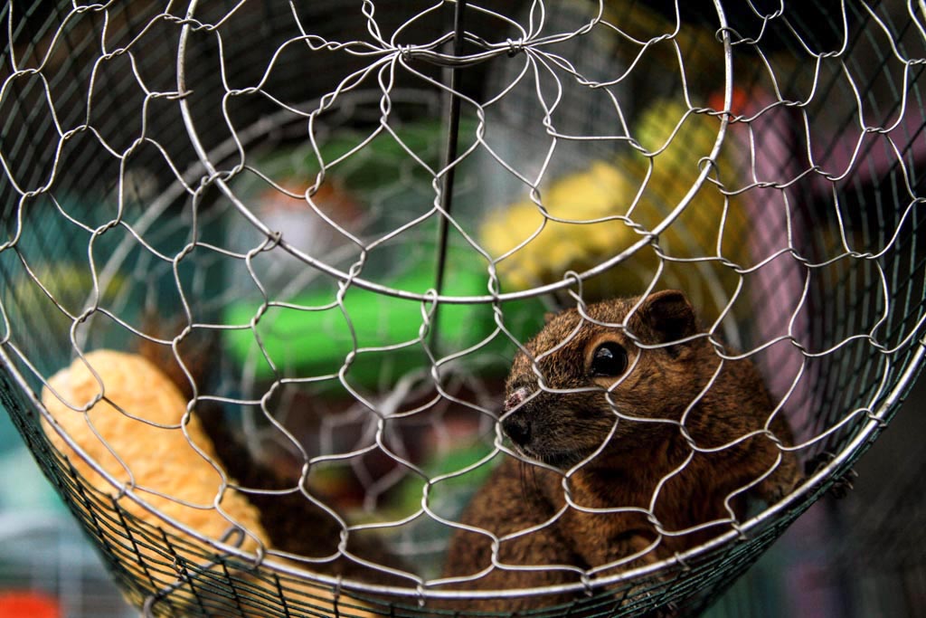 - Ada 20 ekor burung yang dimasukkan dalam satu kandang berukuran sedang 35 x 50 cm. Kondisi yang sangat tidak layak tersebut itu menyebabkan burung stress berat.