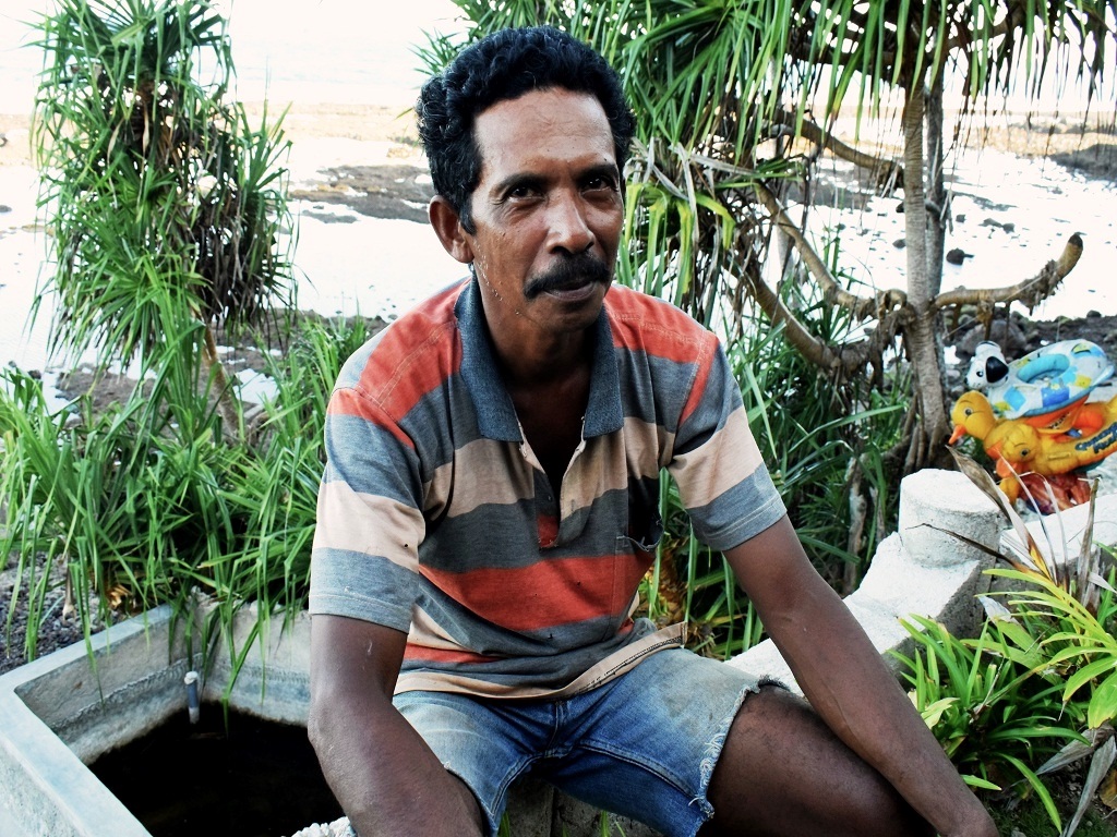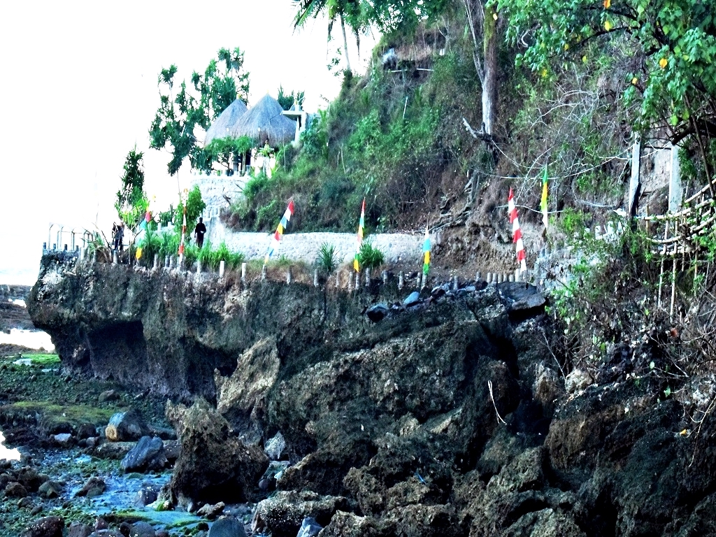 “Saya sengaja membiarkan pohon Pandan Laut (Pandanus tectorius) tumbuh subur di tempat ini agar bisa menjadi pohon pelindung dan peneduh. Rencananya akan saya perluas ke samping kanan lagi dengan memanfaatkan batu karang yang ada,” ungkapnya.