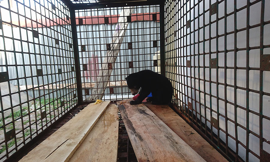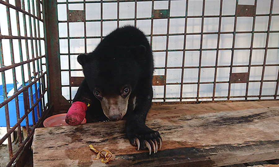 - Shasha, anak beruang madu betina harus kehilangan seluruh jari kaki kanannya. Diamputasi, akibat luka membusuk akibat jerat yang dipasang pemburu.