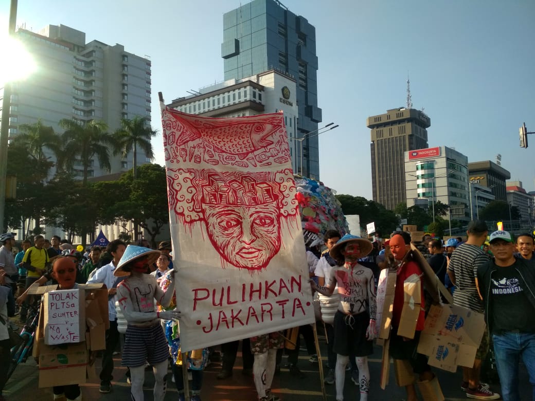 “Jakarta kan posisinya sudah ada kemajuan, sudah bersiap mengeluarkan peraturan yang melarang penggunaan kantong plastik sekali pakai. Pembahasan sudah berjalan setahun ini. Saya rasa sih aksi ini jangan dilihat sebagai demonstrasi terhadap Pemprov Jakarta. Justru merupakan dukungan.”
