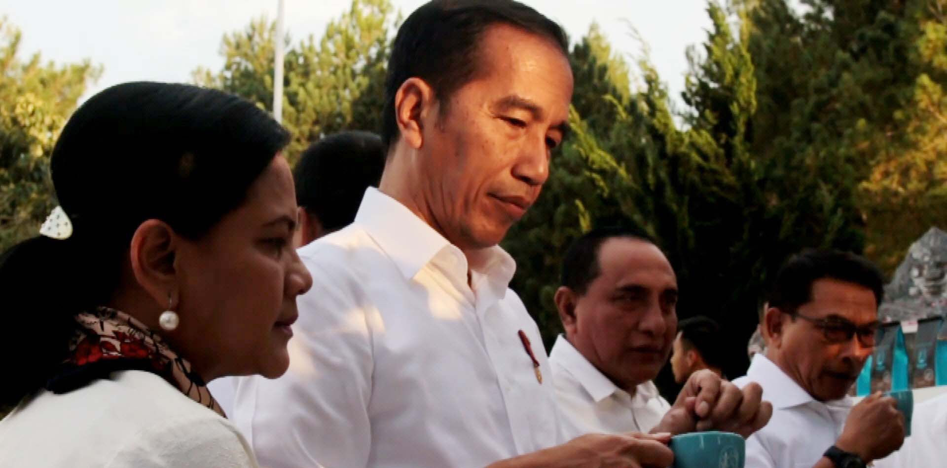 Presiden Joko Widodo bersama ibu negara, Iriana, dan sejumlah menteri kabinet gotong royong, akhir Juli 2019 berkunjung ke Danau Toba, Sumatera Utara. Presiden kunjungi sejumlah lokasi, seperti ke Geosite Sipinsur, Humbang Hasundutan.