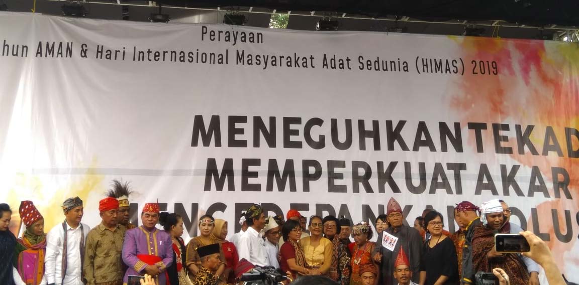 - Masyarakat adat dari berbagai penjuru nusantara berkumpul di Taman Ismail Marzuki, Jakarta, untuk memperingati 20 tahun AMAN sekaligus Hari Masyarakat Adat Dunia, pada 9 Agustus 2019. Ada juga perwakilan masyarakat adat dari beberapa negara hadir, seperti dari Amerika latin, Asia Pasifik, Amerika Utara dan Rusia.