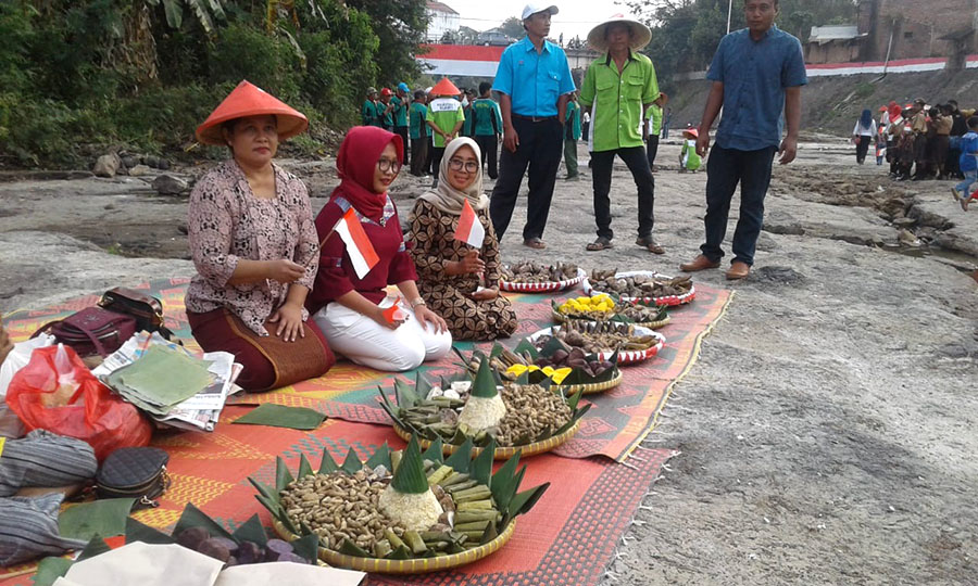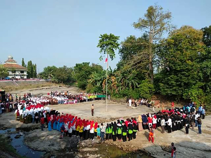 - Warga di Pekon Way Bulok, Kelurahan Bulokarto, Kecamatan Gadingrejo, Kabupaten Pringsewu, Lampung, menggelar Upacara Kemerdekaan Indonesia ke-74 di sungai kering.
