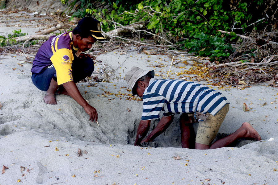 “Sejak kecil, saat pulang sekolah dasar di kelas 3, saya sudah ikut bapak menggali pasir mencari telur maleo.”