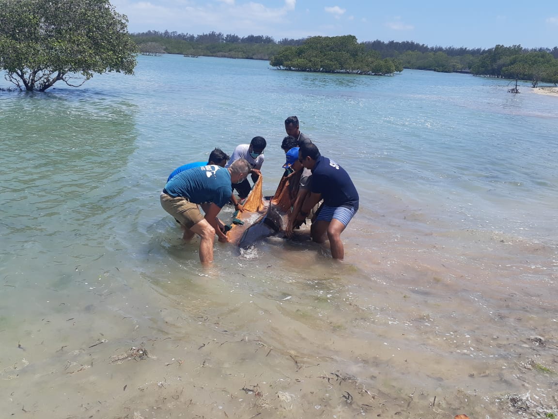 “Sudah bisa berenang 20-100 meter sampai kita tak bisa kejar lagi, tapi menepi lagi,” urai Kanta. Tim penyelamat berkoordinasi dengan dokter hewan, dan bersepakat mengevakuasi untuk perawatan lebih baik, dan perilakunya yang terus menepi.