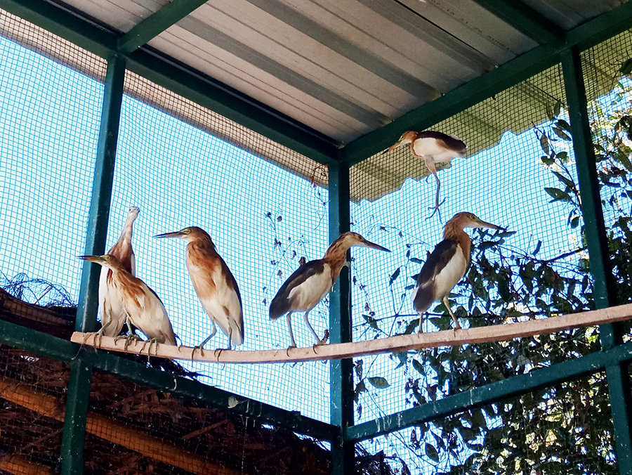 Pagi itu, pertengahan Agustus 2019, pengawas penangkaran dari Dinas Lingkungan Hidup Situbondo, Lukman Dari, tengah memberi pakan blekok sawah dan kuntul kecil yang berada di penangkaran. “Kalau pagi ikan, siang jangkrik, sore ikan lagi,” sebutnya.