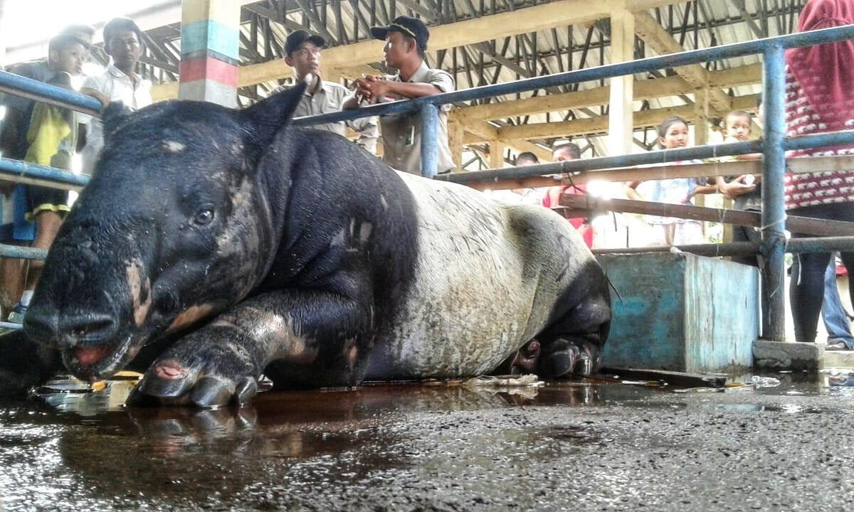 - Pekan pertama September lalu, satu tapir terjebak dalam kubangan air di area perkebunan sawit PTPN III di Asahan. Orang-orang mengejar, setelah berhasil menangkap, lalu mengikatnya.