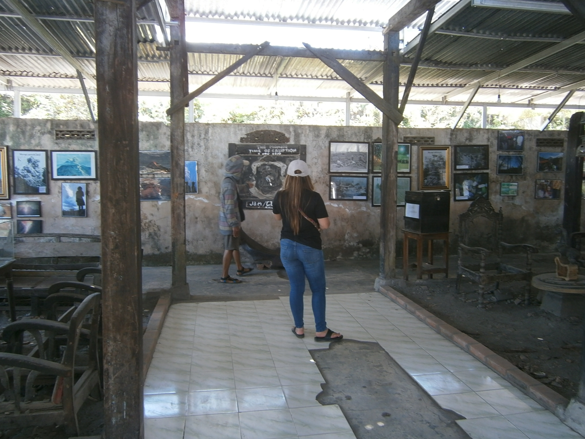 Bayu sigap menjawab pertanyaan ketika mereka tertarik pada benda-benda yang dipamerkan di rumah itu. Ada peralatan dapur, alat elektronik, perkakas rumah tangga. Banyak yang sudah berubah bentuk. Hampir semua berwarna abu-abu pucat oleh pasir dan debu Merapi yang melekat.