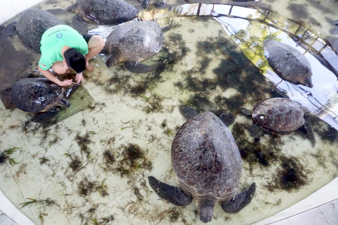 “Penyu-penyu di Berau, Kalimantan jauh lebih besar dari ini,” sebut Aurelia tentang kampung halamannya. Saat ini ia sedang tahap skripsi dengan topik tes darah pada lumba-lumba di sebuah area rekreasi di dekat Pelabuhan Benoa. TCEC menjadi lokasi belajar dalam pemeriksaan dan rehabilitasi penyu di Denpasar.