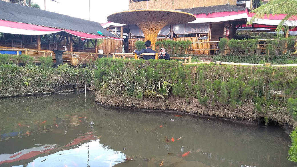 Ada beberapa kolam ikan berisi ikan koi turut jadi atraksi wisata menarik. Gemericik air mengalir, puluhan angsa dan itik berenang. Sejumlah keluarga terdiri dari anak dan ibu bermain dengan itik. Sesekali mereka berswafoto dengan latar belakang unggas.
