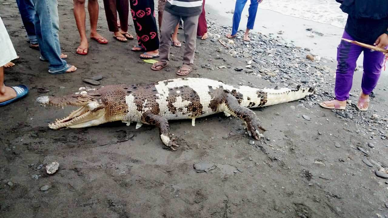 “Saat ditemukan buaya tersebut sudah dalam kondisi mati. Kulitnya terkupas sementara posisi mulutnya terbuka,” kata warga dusun setempat.
