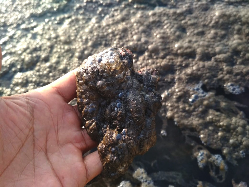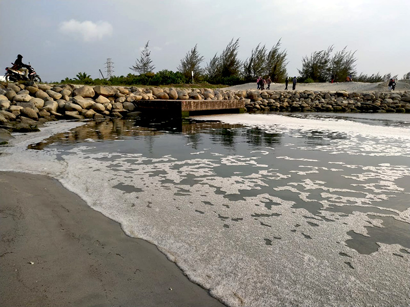 Di lokasi pembangunan, mulut dan hidung Baherman sesekali ditutup rapat dengan masker N95 putih. Bau busuk memang tercium di Pantai Teluk Sepang selama beberapa pekan terakhir. Sumbernya dari pembuangan air limbah PLTU.