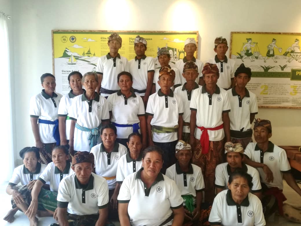 Sebanyak 24 orang petani garam laut Amed berkumpul di dalam Amed Salt Center yang baru diresmikan ini. Sebagian besar sudah lanjut usia, berusia di atas 50 tahun. Usai mengurus ladang garam, mereka muncul mengenakan kain dan selendang, berseragam baru kaos Amed Salt Center. Mereka membuka buku-buku yang dipamerkan, dan saling melempar gurauan melihat foto sendiri dan sejumlah rekannya di sana.