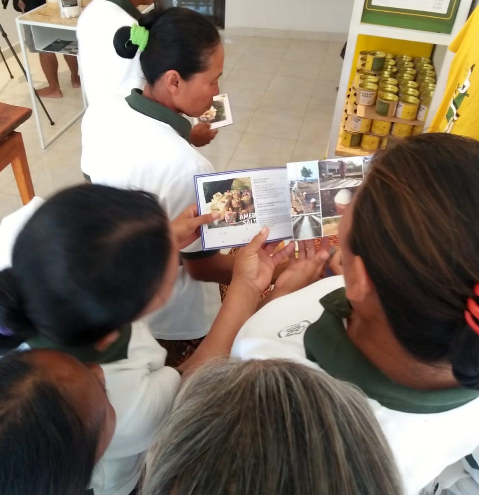 “Turis perlu oleh-oleh khas dari Amed. Mereka bisa menjadi promotor word of mouth ke teman-teman di negara mereka, membuat testimoni. Ini bagian dari memperkenalkan garam Amed,” kata Waty, panggilan perempuan pendiri Sahabat Cipta pada 2007 ini.