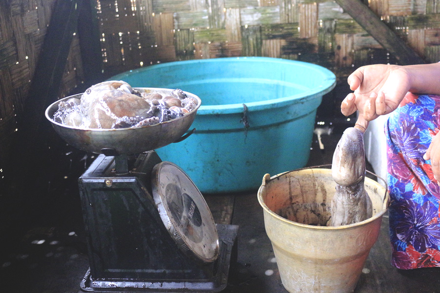 “Size A beratnya 2,4 kg dan size B beratnya 1 kilogram,” kata Sunarya Halauna, pengepul di Desa Popisi, satu dari empat pengepul yang ada. Setelah seminggu dikumpulkan, biasanya gurita akan dibawa ke pengepul di Kota Banggai, selanjutnya ke Kota Luwuk dan dibawa lagi ke Kota Makassar.
