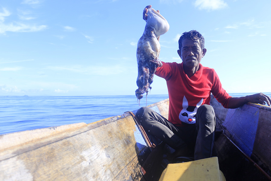 “Sekarang ini lagi musim paceklik gurita. Bahkan kami biasa pulang dengan tangan kosong,” ujar Lamuruli kepada nelayan Bajo dari Desa Kalumbatan di Pulau Peleng, Kabupaten Banggai Kepulauan, ketika berpapasan.