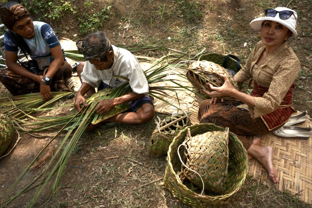 Misalnya ada Kadek Sasmitari, perempuan tengah baya dari Klungkung. Ia menjalin pelepah pohon pisang yang sudah menua menjadi tali. Pelepah pisang yang ringkih, dipintal dengan alat sederhana dari kayu sehingga jadi lebih solid dan kuat. Ia juga memintal ijuk pohon kelapa dan enau menjadi tali.