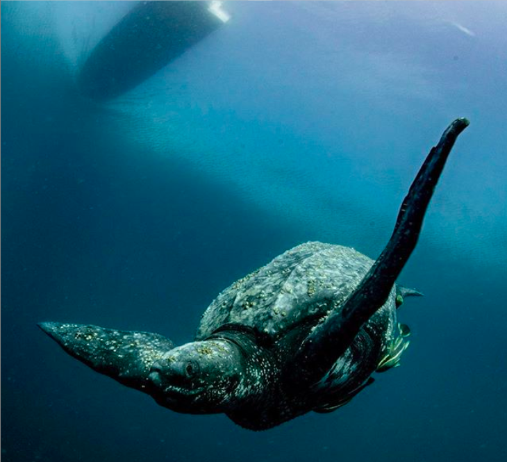 Sebuah akun instagram bernama luca_vaime memposting foto seekor penyu belimbing (Dermochelys coriacea) yang sedang berenang di perairan Kei Kecil Barat, Kabupaten Maluku Tenggara, Maluku. Postingan pada 20 November 2018 lalu disukai lebih 1.237 akun