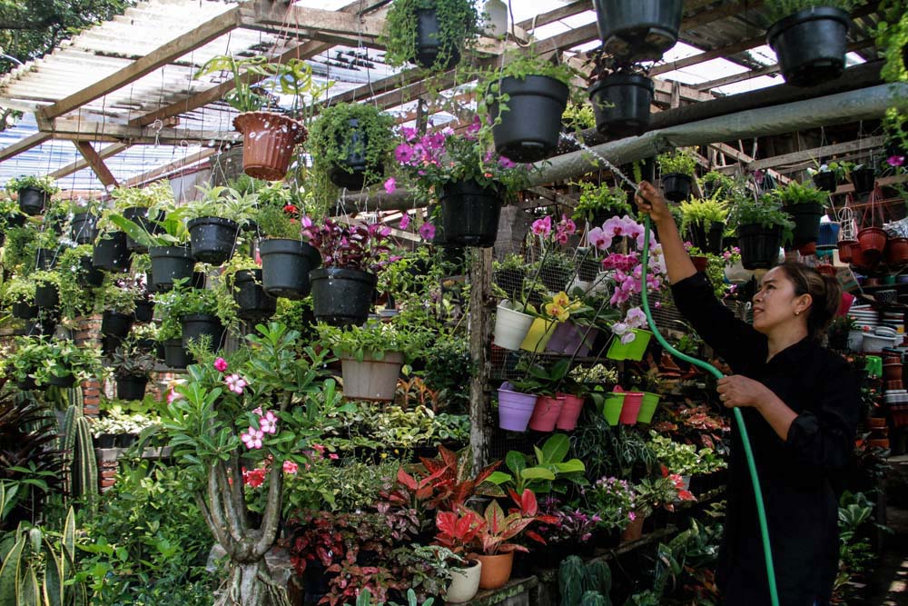 Siama (43) wajahnya ramah ketika melayani pembeli di toko bunga miliknya, tanganya cekatan mengambil salah satu tanaman di dalam pot yang sudah tertata rapi. Satu persatu bunga itu ditunjukkan ke pembeli. Dia sangat hafal nama-nama jenis tanaman itu begitu juga harganya, seolah sudah hafal di luar kepala. Tidak mengherankan, perempuan ini menuturkan berjualan bunga mulai dari kecil yang diwarisi turun temurun dari keluarganya.