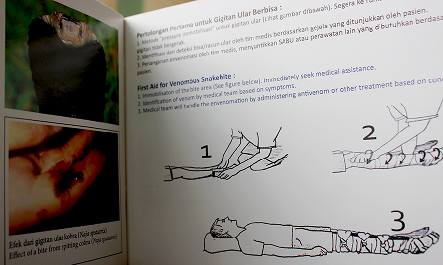Berikutnya, lakukan langkah imobilisasi dan segera ke rumah sakit dengan memastikan area yang digigit itu tidak digerakkan. “Penanganan envenomasi oleh tim medis, berupa penyuntikan SABU [Serum Anti Bisa Ular] atau perawatan lain yang dibutuhkan, tentunya berdasarkan kondisi pasien,” jelasnya.