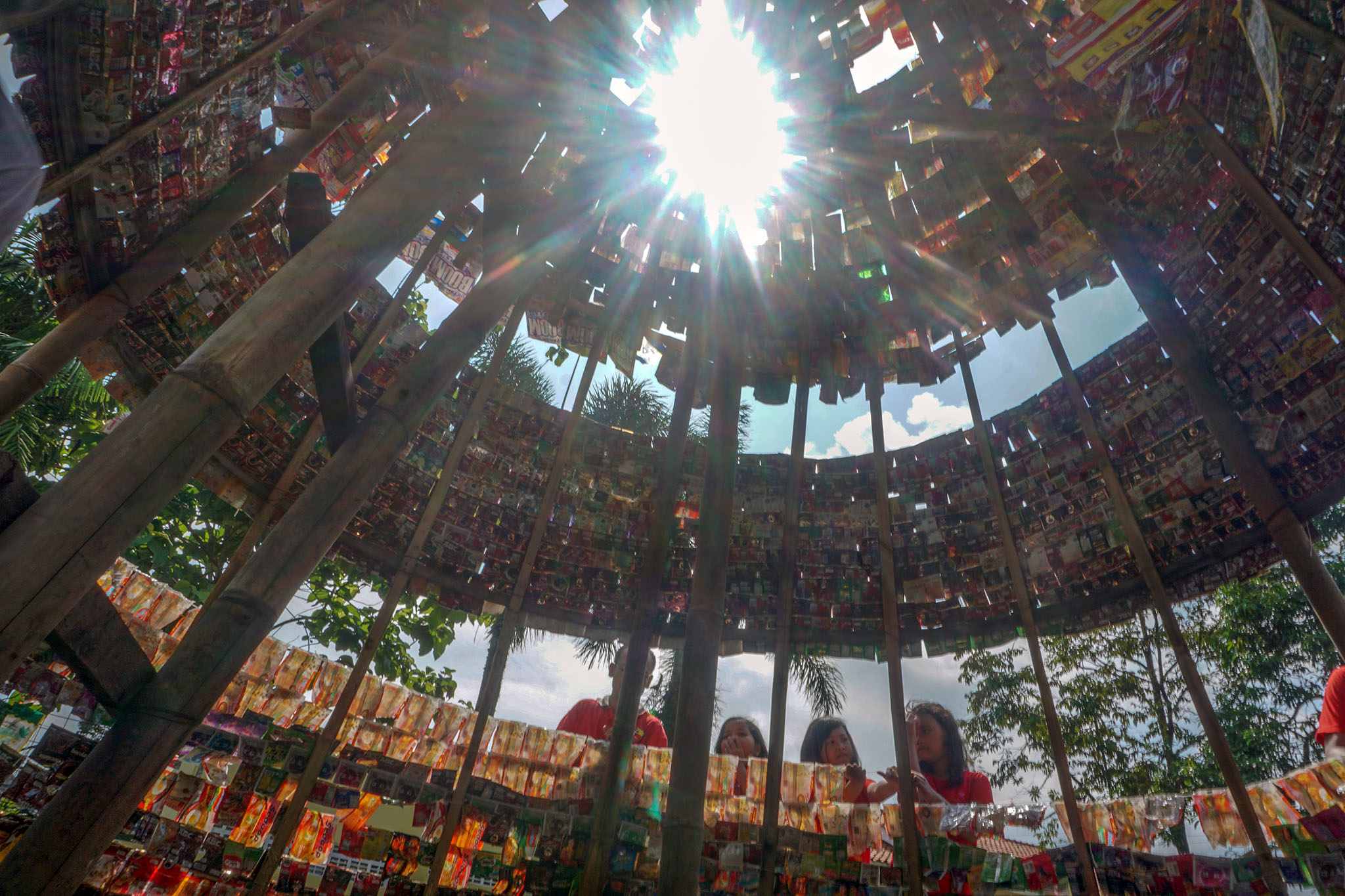 Menurut Heru, pihaknya membuat pohon natal dengan diameter bawah 4 meter dan ketinggian 6 meter. “Setelah dihitung-hitung, untuk membuat pohon natal membutuhkan setidaknya 2 ribu ecobrick. Sedangkan 500 ecobrick digunakan untuk kaki-kaki pohon natal. Sedangkan 500 sisanya dipakai untuk membuat gua,”ujarnya