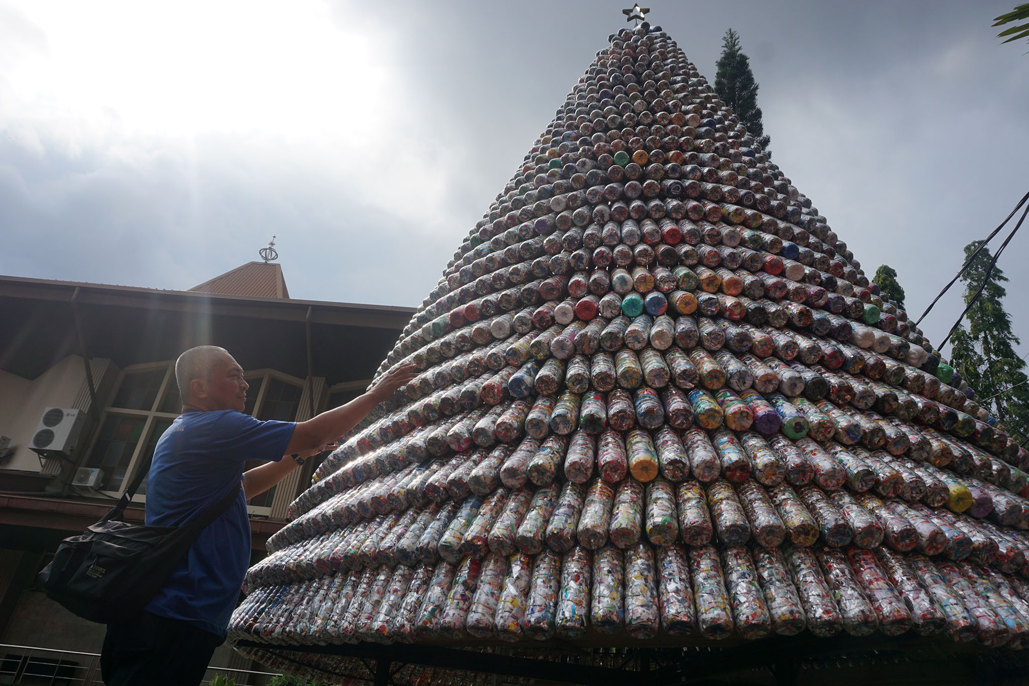 Sejumlah pria tengah menata dengan rapi botol-botol bekas air mineral. Sekilas, tak ada bedanya dengan botol lainnya. Namun, ternyata botol bekas itu telah diisi potongan-potongan plastik. Itulah yang disebut sebagai ecobrick. Mereka menata ecobrick menjadi pohon natal di Gereja Katedral Kristus Raja, Purwokerto, Jawa Tengah. Pohon natal yang terbuat dari ecobrick memang cukup unik, karena lazimnya pohon natal bentuknya cemara, baik pohon hidup atau cemara plastik.