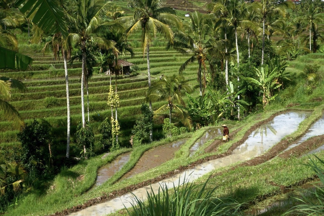 Jika berjalan-jalan di area persawahan, misalnya di Jatiluwih, terlihat simbol-simbol Tri Hita Karana, tiga penyebab keseimbangan. Pertama, dari sisi tata ruang, petani membangun sawah dengan memperhatikan lansekap tanah. Misalnya jika kemiringannya terjal, dibuatkan terasering, walau menyempit tapi membuatnya terlihat indah, estetis.