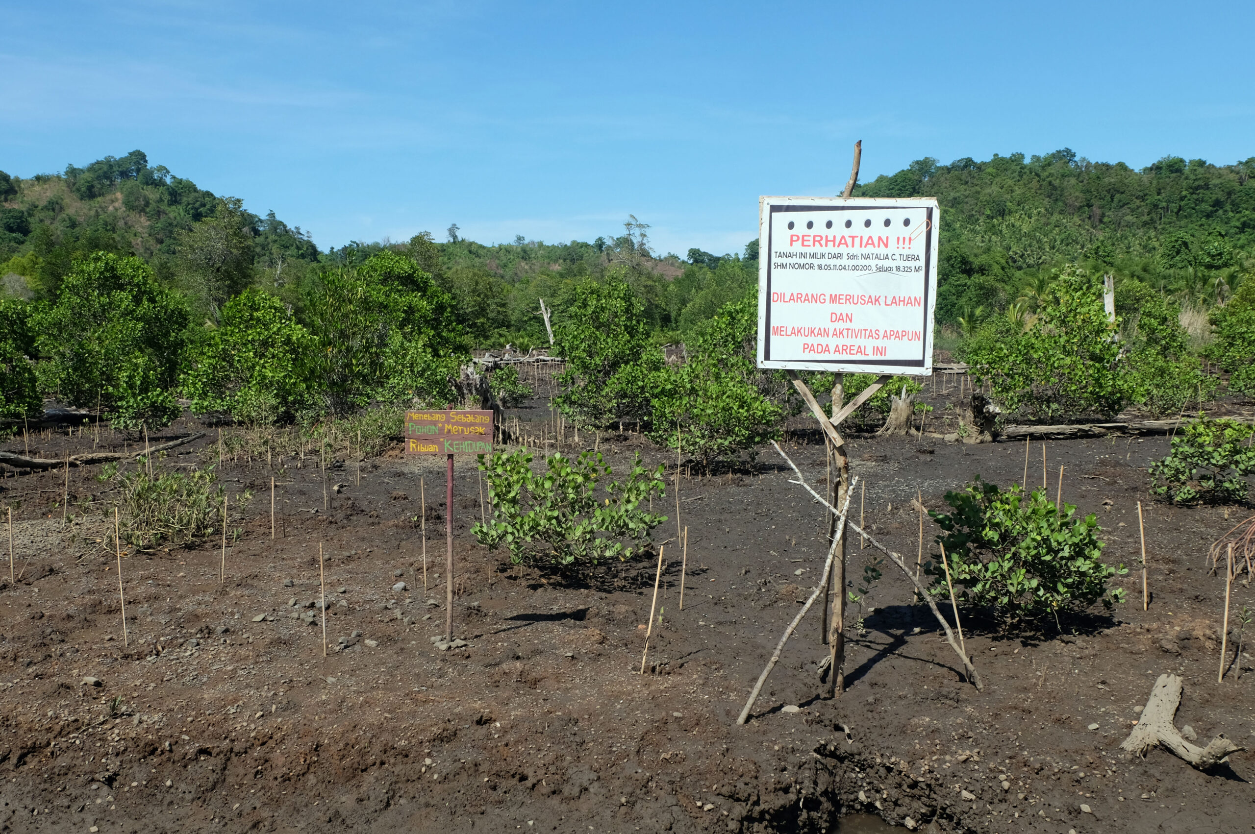 Namun belakangan diketahui lahan yang dijadikan kawasan restorasi mengrove di Desa Baturapa itu ternyata bermasalah. Lahan seluas 18.325 m2 itu diklaim milik Natalia C. Tuera, berdasarkan Sertifikat Hak Milik No.18.05.11.04.1.00200.