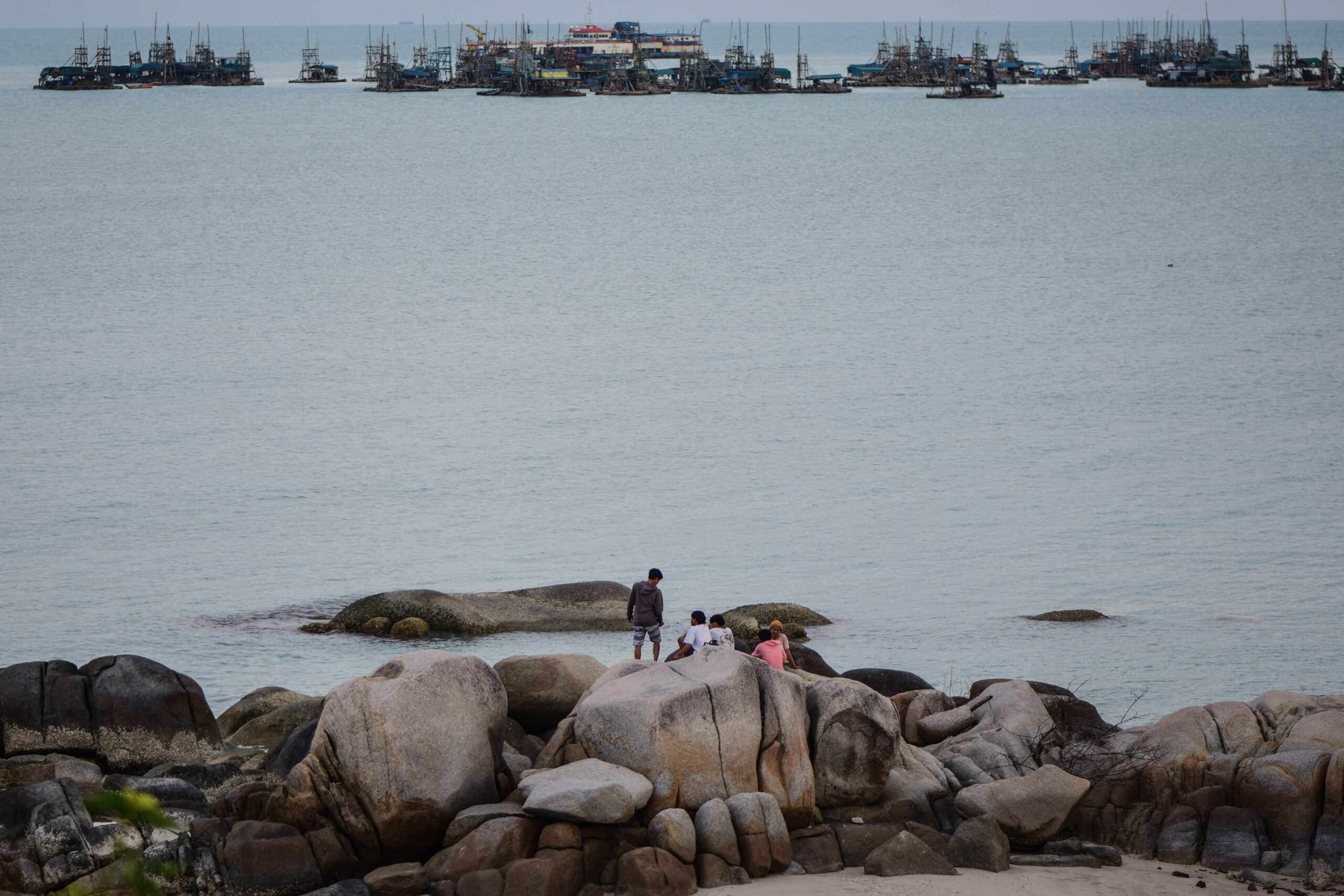 Mengejutkan, hampir di semua titik yang ramai dikunjungi wisatawan terdapat tumpukan sampah plastik, di pasir maupun di pohon mangrove. Di setiap pantai terlihat juga puluhan ponton tambang timah milik masyarakat yang jaraknya tidak jauh dari bibir pantai.