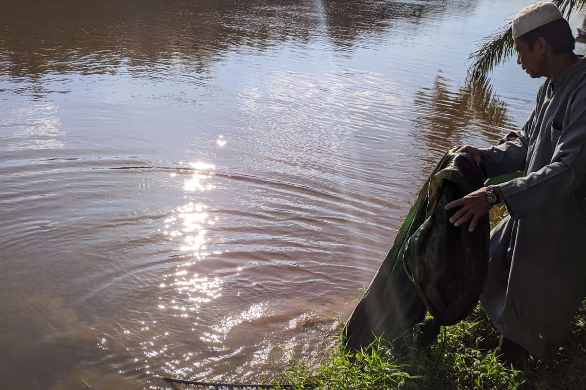 Keterangan foto utama: Syaehar, penangkar sidat yang alami kekrugian setelah sungai tercemar. Foto: Agus Mawan/ Mongabay Indonesia
