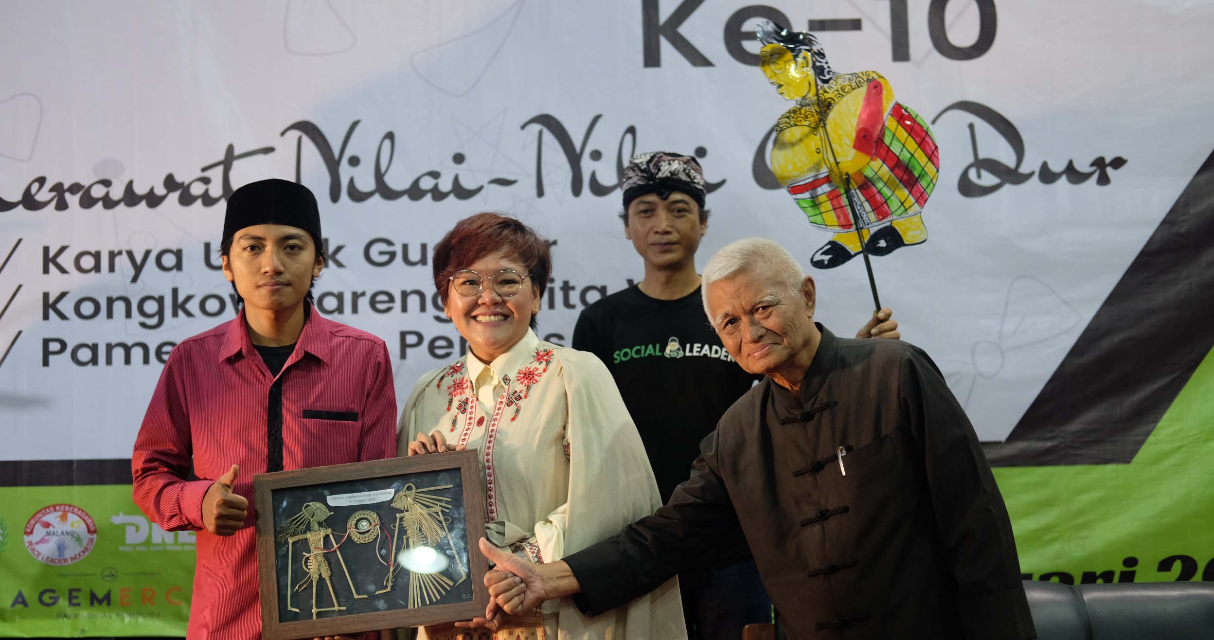 Sekeliling ruangan dipenuhi karya para seniman Kota Malang. Mereka memamerkan kriya dan lukisan dengan beragam madia. Sebagian besar pengunjung langsung menikmati karya para perupa yang menggambarkan sosok presiden ke empat ini. Beragam warna dan media lukis menggambarkan sosok Gus Dur, yang ditampilkan sesuai persepsi sang seniman.