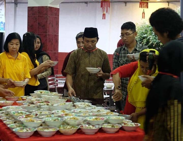 Usai acara, mereka makan bakso dan soto bersama. Berdiri sama tinggi dan duduk sama rendah. Mereka berbaur, pendeta, romo, bante, ustadz, kiai, bonus dan khalayak makan bersama-sama. Swalayan, mereka mengambil makanan sendiri.