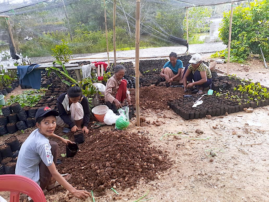 Wahyono membuktikan dengan tekun melakukan penanaman, maka dirinya bersama kelompok harus terus membuat pembibitan mangrove. “Ternyata dari pembibitan itulah, mulai muncul penghasilan. Dari awalnya hanya sedikit, kini setiap tahunnya kelompok mampu membuat sekitar 500 ribu hingga 600 ribu bibit mangrove. Dengan pembibitan sebanyak itu, maka tidak mungkin hanya dilaksanakan oleh anggota kelompok yang jumlahnya hanya 18 orang. Biasanya, kalau pesanan sedang banyak, pekerjanya berkisar antara 25-30 orang. Jadi, mereka yang biasa menjadi nelayan dan petani, akan memperoleh tambahan tambahan karena ikut serta kerja membuat pembibitan mangrove,” jelasnya.