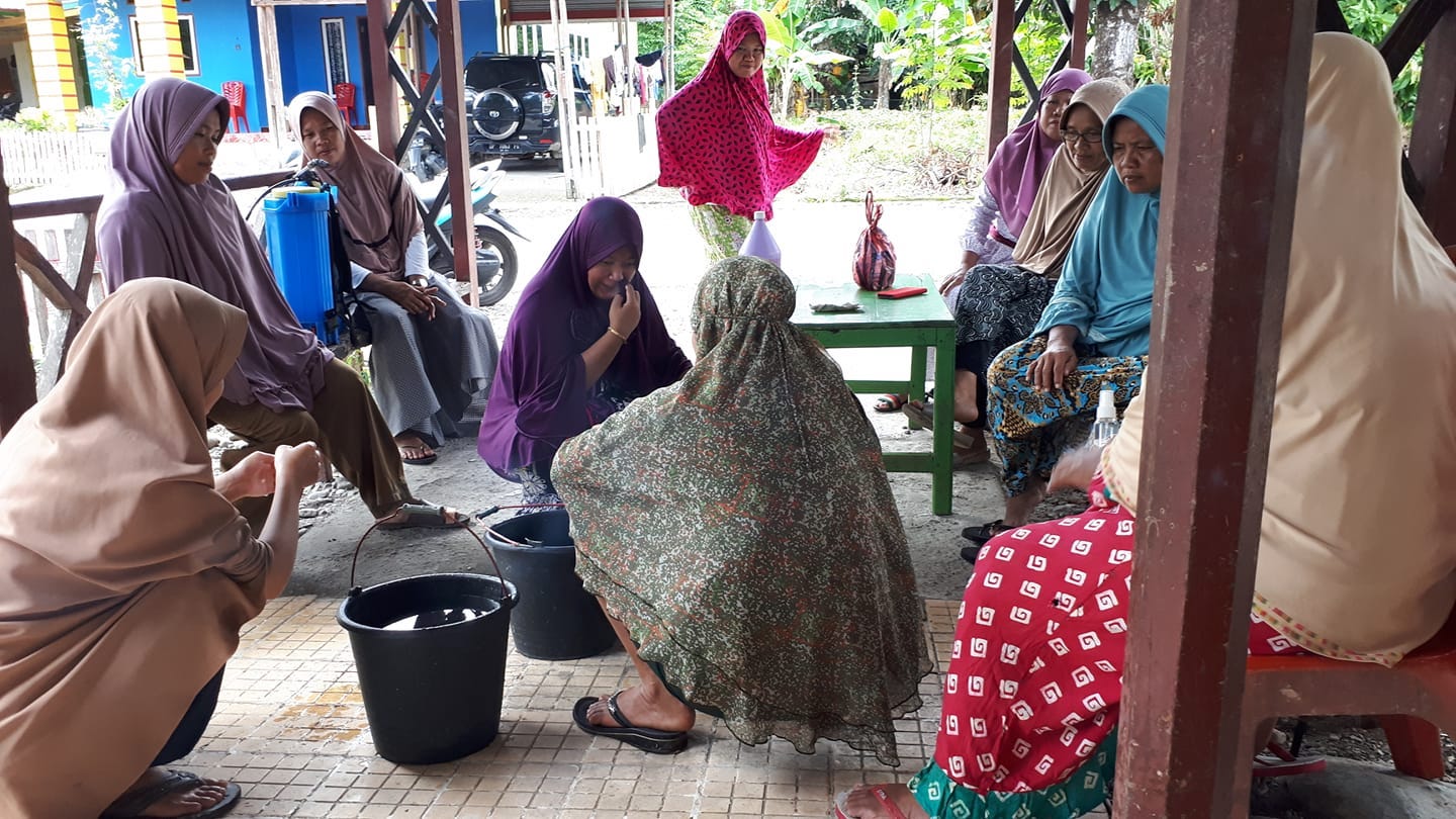 Tidak hanya membangun bilik sterilisasi, warga juga membuat cairan disinfektan alami berbahan daun sirih dan jeruk nipis.