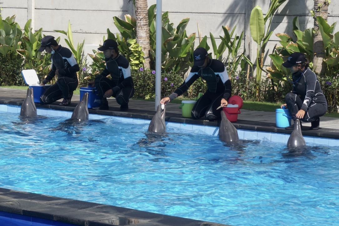 Karena lumba-lumba jenis mamalia menurutnya protokol penanganan sama, dan sejauh ini pemberian pakan dan perawatannya disebut sama seperti sebelum pandemi.
