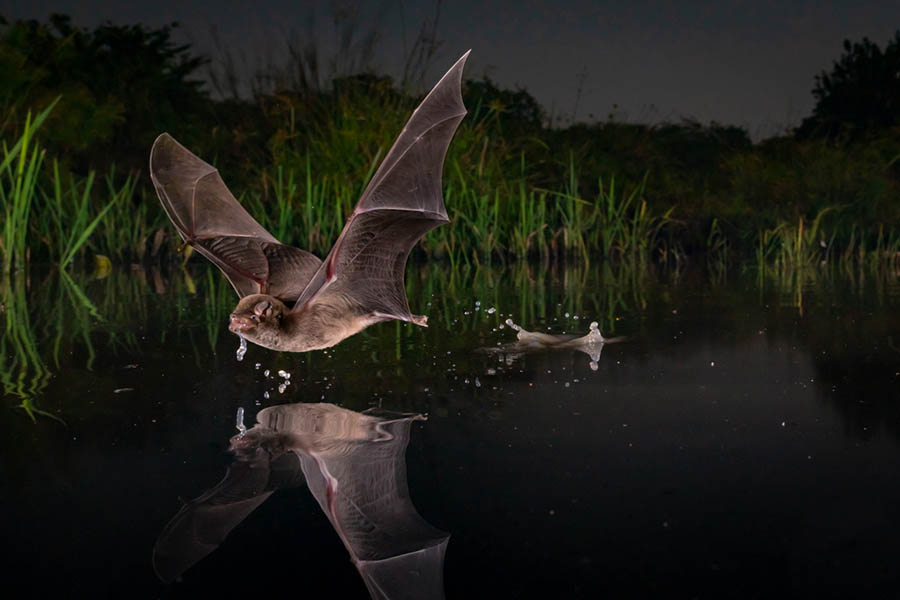 Dari pantulan kelelawar hingga cipratan air, momen sederhana itu tampak mendalam dari balik lensa kamera. Foto ini memenangkan kategori Hewan Bersayap.