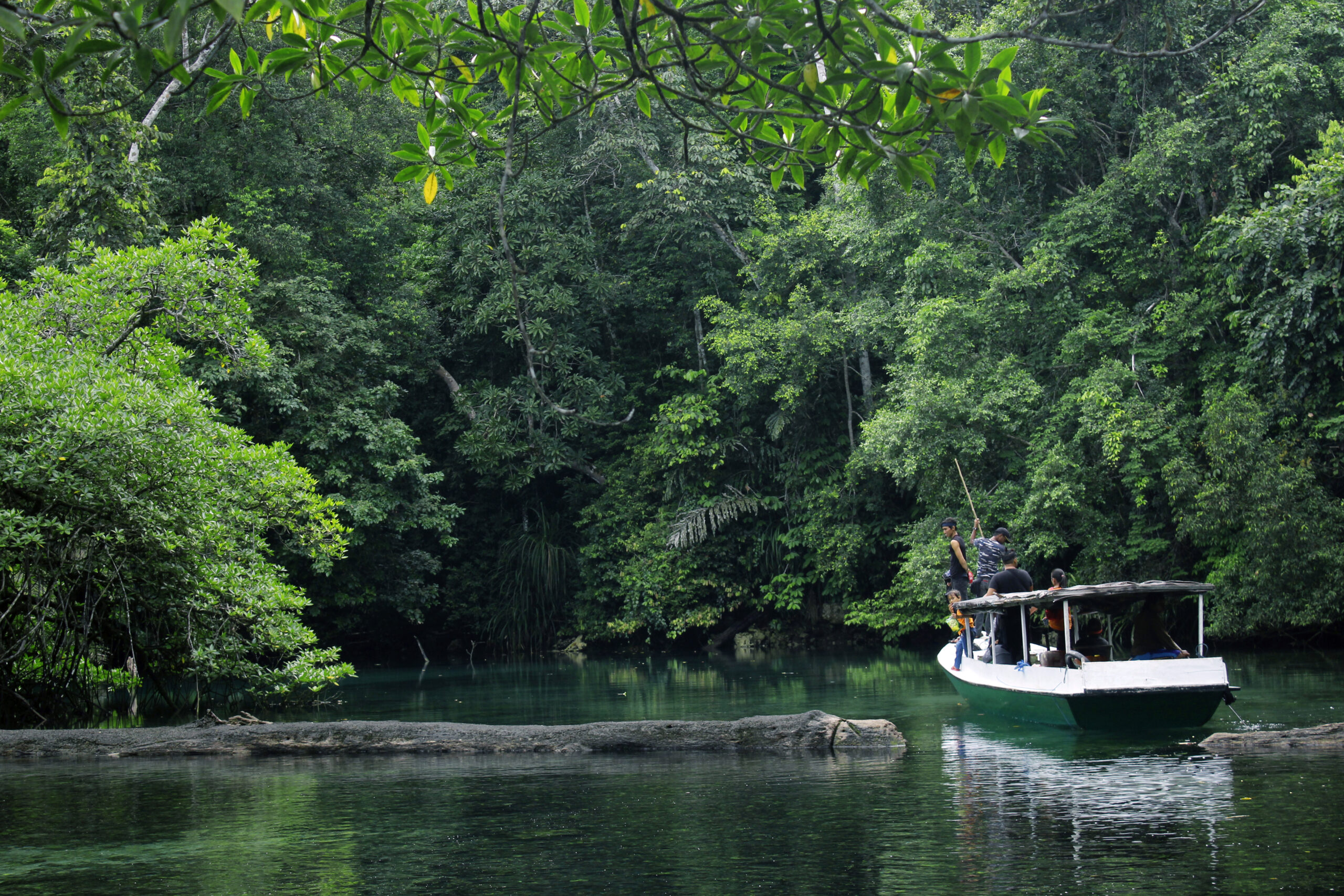 Keterangan foto utama: Sumber mata air dari goa di Kawasan Karst Sangkulirang Mangkaliat di Kecamatan Biduk-biduk. Foto: Rodhial