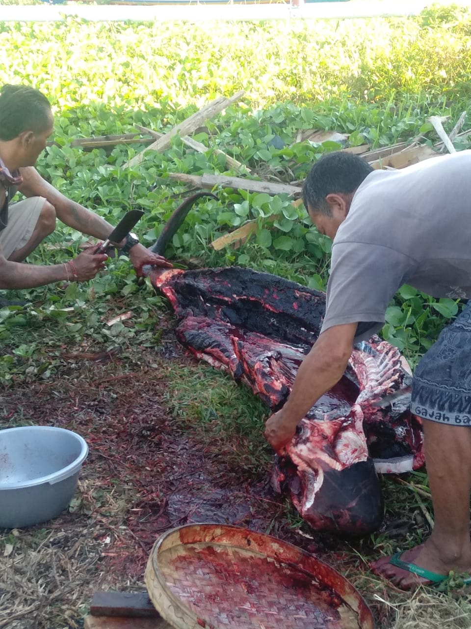 Untuk membuktikan jenis satwa, sampel daging akan diuji DNA. “Habitat Kogia sima di selatan Bali, banyak kejadian terdampar,” lanjutnya. Daging juga sudah dipotong kecil, dan ada pengakuan untuk diambil minyaknya.