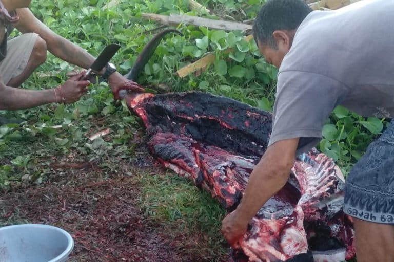 Seekor Paus Sperma Kerdil Terdampar, Warga Malah Memotong Dagingnya