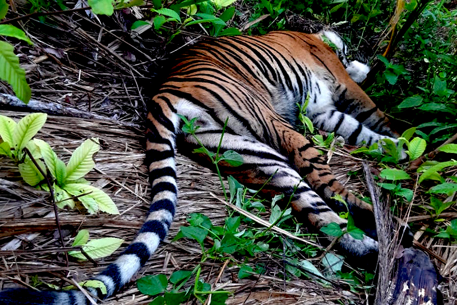 Seekor harimau sumatera ditemukan mati di wilayah Desa Kapa Sesak, Kecamatan Trumon Timur, Kabupaten Aceh Selatan, Aceh, pada Senin [29/6/2020]. Satwa liar dilindungi ini meregang nyawa akibat keracunan memangsa kambing,