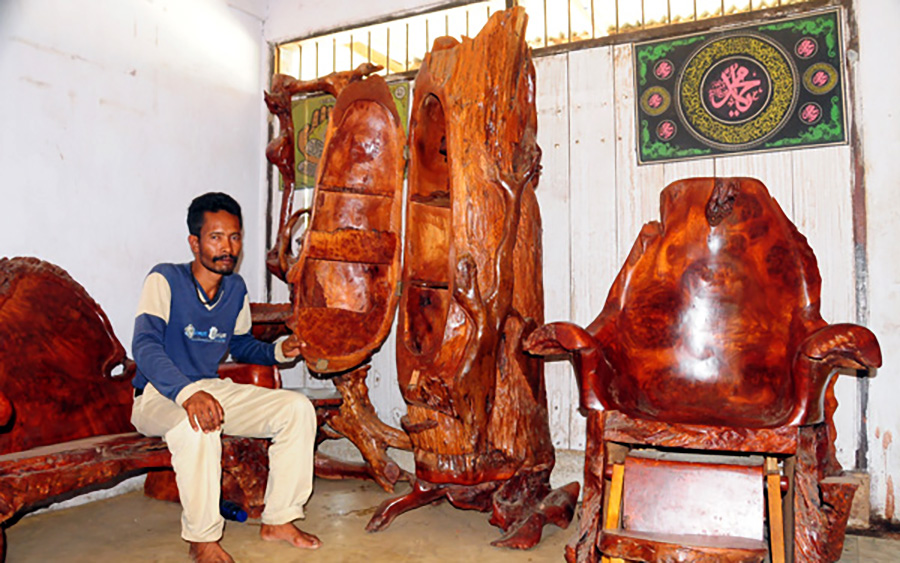 Malio menyebutkan, kayu ini unik karena seratnya yang sangat indah berbentuk garis melingkar dan ditengahnya terdapat titik. Kayunya juga sangat wangi sehingga diincar oleh banyak orang.