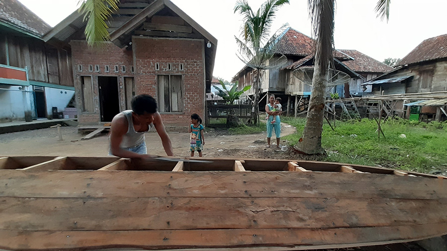 “Dulu, di desa ini banyak perahu tongkang, termasuk speedboat. Tapi sejak jalan darat dibuka, perahu mulai ditinggalkan warga. Tapi berkurangnya nelayan, ya karena ikan memang sedikit [populasi],” kata Arasman.
