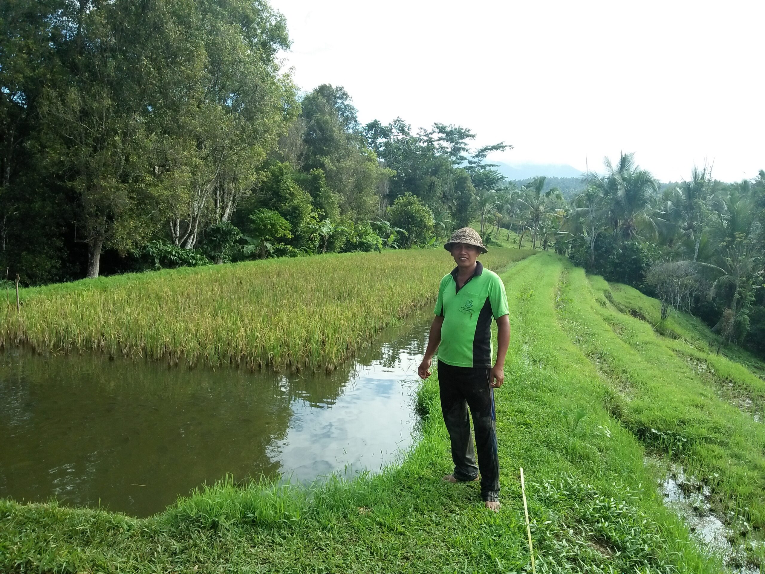 Areal sawah dan kolam ikan yang dikelolanya sekitar 78 are. Ia senang kini ada beberapa warga lain juga yang mengintensifkan lahan sawah dengan kolam ikan, karena itu ia hendak membuat kelompok mina padi. “Silakan kemah atau mancing di sini, sambil bakar ikan,” ajaknya.