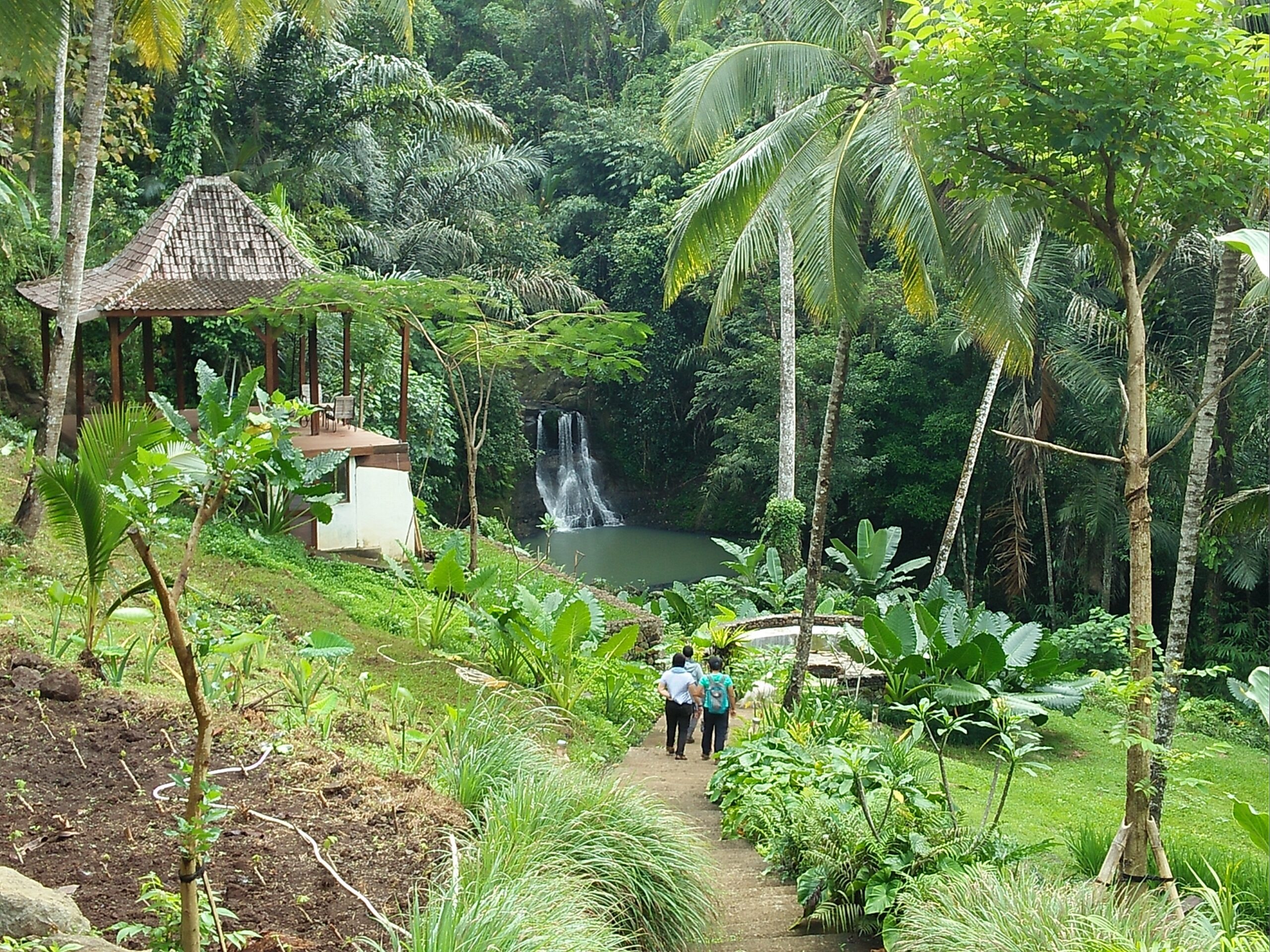 Pengelolanya, I Nyoman Arsana sedang sibuk bekerja di sawah. Ia menyambut bercampur keheranan karena kami tidak membuat janji sebelumnya. Aliran irigasi dibendung sehingga ada banyak pancuran air yang menciptakan suara gemericik nan menenangkan.