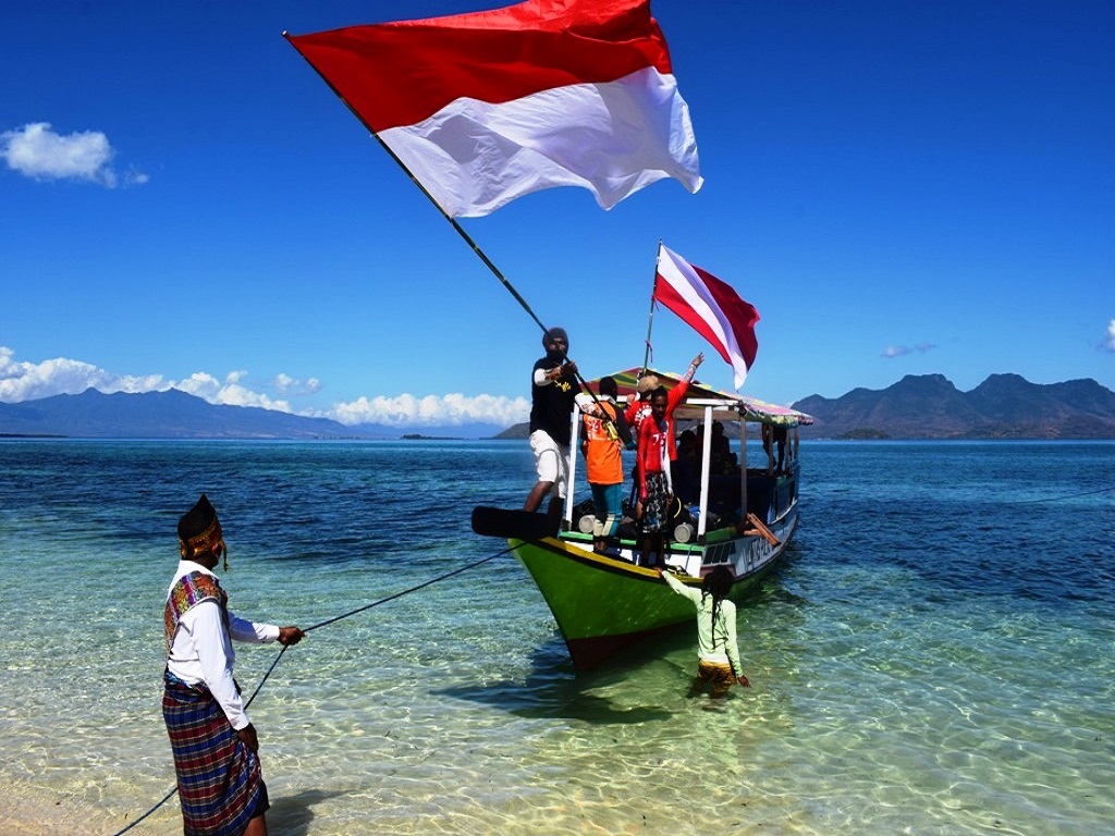 Untuk mencapai lokasi pengibaran bendera,para penyelam bertolak dari pelabuhan Nangahale menggunakan perahu nelayan yang biasa menghantar wisatawan untuk berwisata di Teluk Maumere.